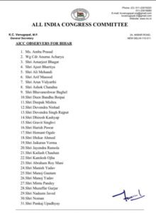 कांग्रेस ने नव नियुक्त ऑब्जर्वरों को बिहार के विभिन्न विधानसभा क्षेत्रों में पार्टी संगठन को मजबूत करने, जमीनी स्तर पर बूथ मैनेजमेंट सुनिश्चित करने और स्थानीय कार्यकर्ताओं को एकजुट कर कांग्रेस प्रत्याशियों की जीत सुनिश्चित करने का कार्य सौंपा गया है। पार्टी आलाकमान ने पिछले चुनावी अनुभव, सांगठनिक पकड़ और जमीनी सक्रियता को देखते हुए बिहार में नेताओं को जिम्मेदारी दी है।
