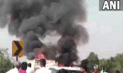 गलत दिशा से आ रहे डंपर ने बस में मारी टक्कर, हादसे के बाद लगी आग में जलकर 8 की मौत, कई घायल