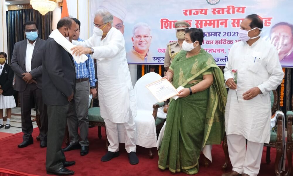 रायपुर: राज्यपाल अनुसुईया उइके के मुख्य आतिथ्य और मुख्यमंत्री भूपेश बघेल की अध्यक्षता में आज शिक्षक दिवस के अवसर पर राजभवन के दरबार हॉल में आयोजित...